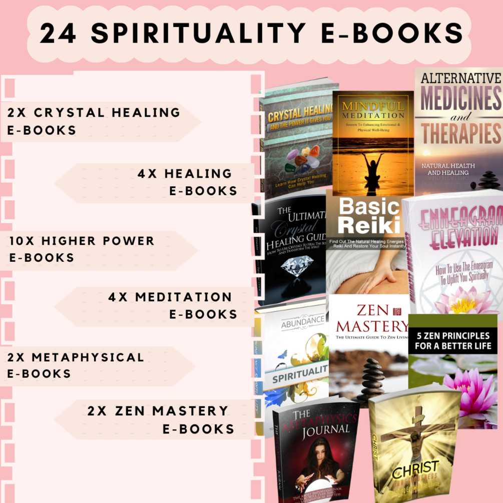Spiritual package 24 ebooks, 1000 therapy sheets, audio affirmations and free bonus kick start your spiritual journey
